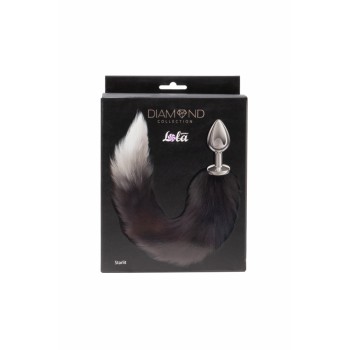 Diamond Starlit - Schwarz-weißer Fuchsschwanz mit 8,2 x 3,4cm Metallplug, mit Kunstfellschwanz