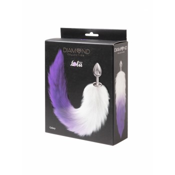 Diamond Galaxy - Cola de Zorro Morada y blanca con plug metalico de 6,8 x 2,8cm