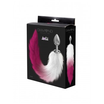 Diamond Starlit - Cola de Zorro Rosa y blanca con plug metalico de 8,2 x 3,4cm