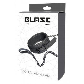 Collar y Correa Negra con cadena metálica negra de 10cm- BLAZE