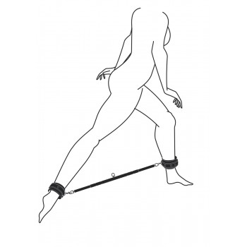 También puedes utilizar el anillo en ambos extremos para agregar otros juguetes bondage a la barra, como por ejemplo esposas para los tobillos.