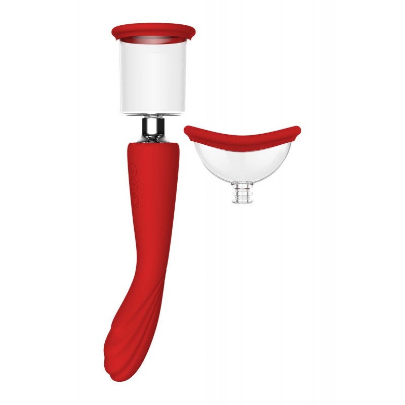 Este estimulador doble tiene una función de succión en un lado con 2 ventosas intercambiables para adaptarse a labios, clítoris, pezones y otras zonas erógenas.