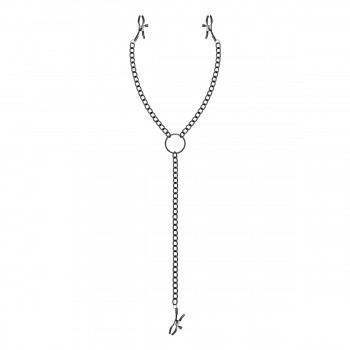 This body chain is worn on the nipples and around the clitoris. The nipple clamps have non-slip tips for a good grip and are equipped with a small slider. With this you can easily adjust the pressure on the nipples. Are you ready?