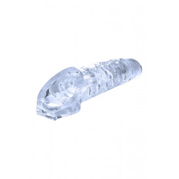 TPE sheath with fastening ring, total L 23cm, insertable L 14cm, ring diameter 4.3cm, inner diameter 4.6cm, external diameter 5.6cm