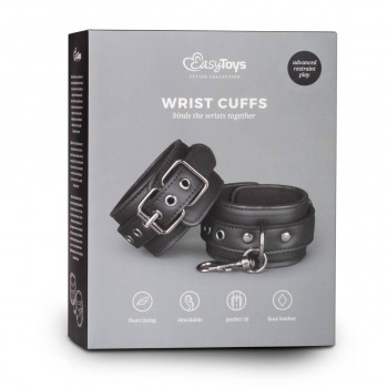 Black Vegan Leather Handcuffs joined by metal carabiners