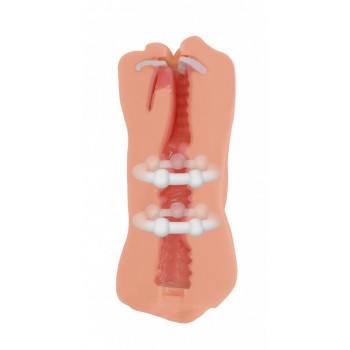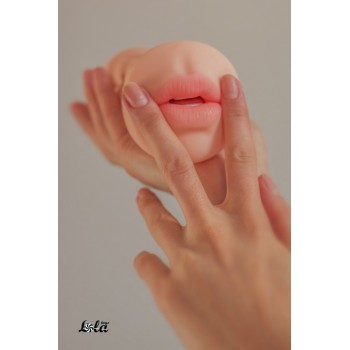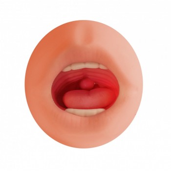 Double-ended masturbator Hyper-realistic vagina and mouth with teeth and tongue, with textured tunnel made of fantasticTPR