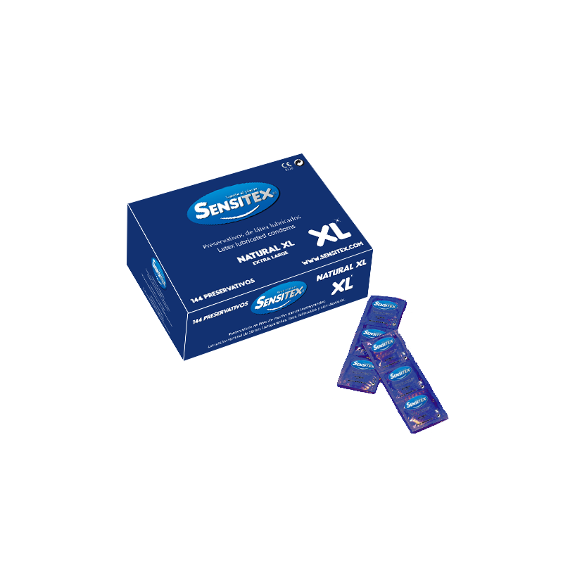 Pack 144 units Natural Condoms XL (57mm). Sensitex large condoms (57mm). Vegan-friendly