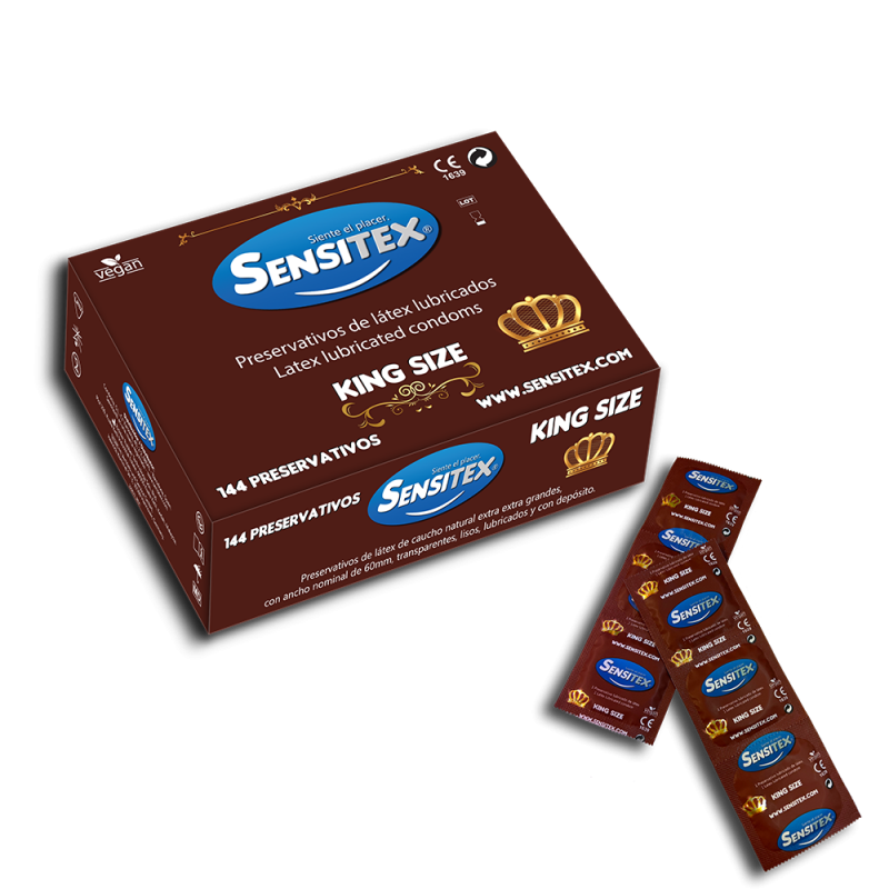 Pack 144 ud Natural KING SIZE Condoms (60mm). The largest condoms (60mm) from Sensitex. Vegan-friendly