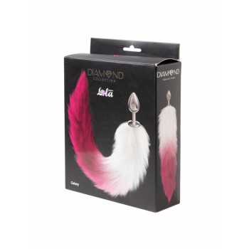 Diamond Galaxy - Coda di volpe rosa e bianca con tappo in metallo da 6,8 x 2,8 cm