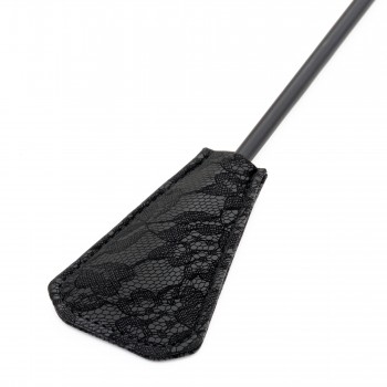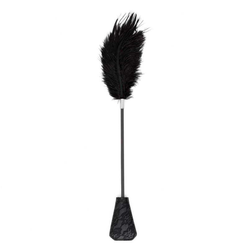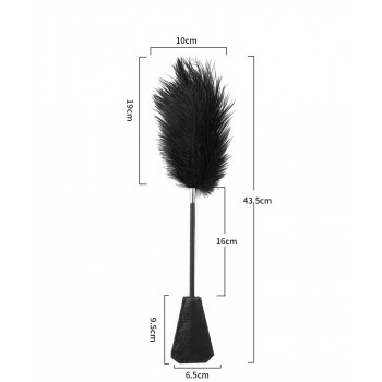 Frusta con un'estremità di piuma e l'altra di pala a forma di diamante. Lunghezza 42cm