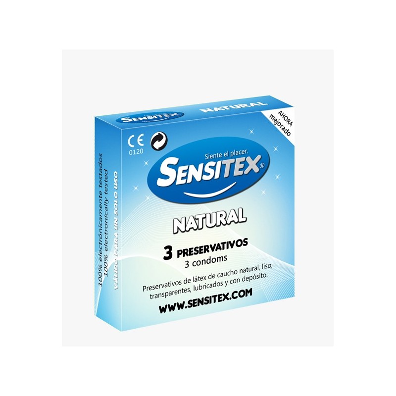 Scatola 3 unità Preservativi Naturali. Preservativi standard Sensitex. Adatto ai vegani
