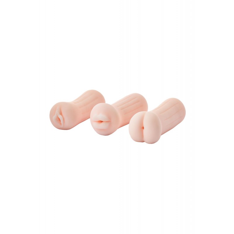 Conjunto de 3 masturbadores Tina, forma vagina, forma de ânus e forma de boca. Interior texturizado. TPE